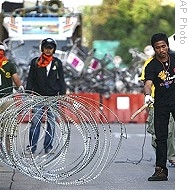 | Anti-government protesters sets up barrier in front of Don Mueang airport in Bangkok, 28 Nov 2008 |