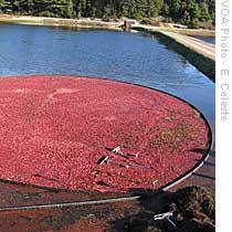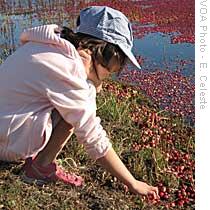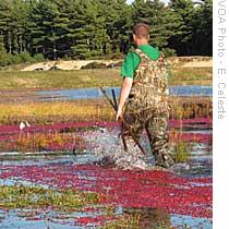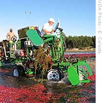 "We flood the bogs8 that they grow on, and then we use specialized9 equipment to beat the fruit off the vines," he explains. "They have little seeds inside and air pockets. Those air pockets allow them to float when we pick them on the water. And that makes it easier for us to harvest them."