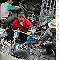 "Electric cords are piled up and set on fire to burn the plastic insulation10 off so that they can then take the copper11 to a recycler," he explains. "So there's a lot of people are getting very sick because we're sending them our junk in the name of recycling."