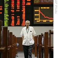 | Trader walks in front of electronic board at Philippine Stock Exchange, financial district of Makati, 2 Dec 2008 |