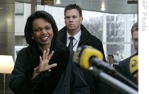 | U.S. Secretary of State Condoleezza Rice, left, waves as she arrives at NATO headquarters in Brussels, 02 Dec 2008 |