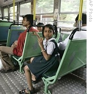 | Girl in a bus on her way back home from school in Mumbai, 01 Dec 2008 |