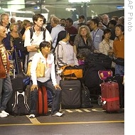 | Stranded5 passengers at Suvarnabhumi airport, Bangkok, 26 Nov 2008 |