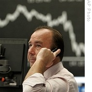 | A broker1 is seen under the curve of the German stock index DAX at the stock market in Frankfurt, central Germany, 04 Dec 2008 |