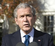 | President George W. Bush makes a statement on the economy on the South Lawn of the White House, 5 Dec. 2008 |