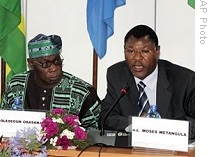 | Former Nigerian president and special UN envoy1 Olusegun Obasanjo and Kenyan Foreign Minister Moses Wetangula during opening of Congo peace talks in Nairobi, 8 Dec. 2008 |