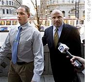 | Blackwater guard Donald Ball (L), and his attorney Steven McCool arrive at Salt Lake City's federal court to surrender, 08 Dec 2008 |