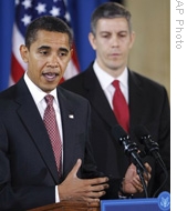| President-elect Barack Obama introduces Education Secretary-designate Arne Duncan during a news conference in Chicago, 16 Dec 2008 |