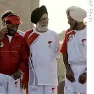 | From left, former Olympian Milkha Singh, Indian Sports Minister M.S. Gill and Indian Olympics Association Secretary General Randhir Singh in New Delhi (File) |
