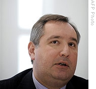 | Russia's ambassador to NATO, Dmitry Rogozin, gives a press conference in Brussels, 19 Dec 2008 |