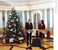 | Ukranian FM Orgyzko (L)and Sec.of State Rice at the signing ceremony for the U.S.-Ukraine Charter, 19 Dec 2008 |
