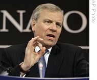 "The United States supports Ukraine's integration7 into Euro-Atlantic structures. And I want to assure you that the declaration at Bucharest which foresees that Ukraine will be member of NATO when it can meet those standards is very much at the center of our policy. We look forward to helping8 you execute the decisions of Brussels to intensify9 the work of the Ukraine-NATO commission toward the fulfillment of the Bucharest declaration", she said.