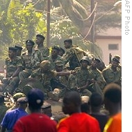 | Guinean soldiers on armored vehicles patrol streets of Conakry, 23 Dec 2008 |