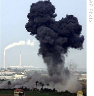 | Seen from the southern Israeli city of Ashkelon (in the background), an Israeli missile strikes northern Gaza, 29 Dec 2008 |