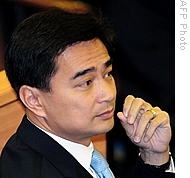 | PM Abhisit Vejjajiva' government is seen as invalid1 by supporters of former PM Thaksin (file photo) |