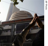 | An onlooker2 gestures as he watches share prices on a screen on the facade3 of the building of the Bombay Stock Exchange (BSE) in Mumbai, India, 21 Jan 2008 |