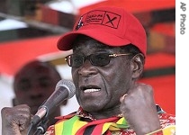 President Robert Mugabe greets party supporters on his first rally since the elections, in Shamva about 100 kilometres northeast of Harare, 29 May 2008 |