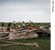| Children play on the wreckage4 of their school in the village of Chaung Lin in the isolated5 area of Kanzeik in the Irrawaddy Delta region, 23 May 2008 |