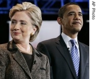 | Democratic presidential hopefuls Sen. Hillary Rodham Clinton (l) and Sen. Barack Obama Cleveland (file photo) |