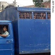 | Vehicle laden4 with prisoners arrives at entrance to jail in Dhaka, 04 Jun 2008 |