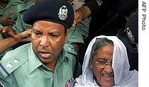 | Sheikh Hasina (r) is surrounded by police officers as she leaves court (2007 File) |