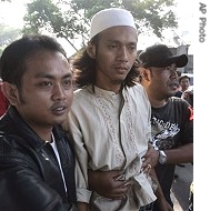| Plain-clothed Indonesian police officers arrest member of Islamic Defenders3 Front (FPI) in Jakarta, 04 Jun 2008 |