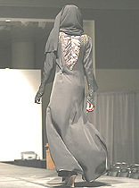 "From that, the students actually took the time to design the abaya," she says. "You can call it a black canvas, if you want to. All they had to do, which sounds easy but not so easy, was to make sure that the garment covers what it's supposed to cover. Aside from that, they could change the actual way the abaya is cut, whether how the sleeves are seamed or how the body is seamed, how the closure works in the front. They were able to play with all of those design details."