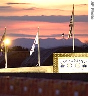 | Sun sets over Camp Justice and its adjacent tent city, legal complex of US Military Commissions, at Guantanamo Bay US Naval4 Base, 04 Jun 2008 |