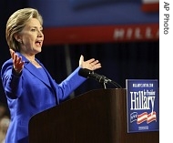 | Hillary Rodham Clinton speaks during her South Dakota and Montana primary night event in New York, 3 June 2008 |