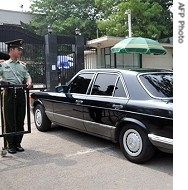| Chinese paramilitary embassy guard opens gate for arrival of N. Korean envoy1 Song Il-Ho at Japanese Embassy in Beijing, 07 Jun 2008 |
