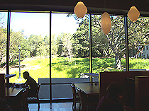 | The library's reading hall has large windows overlooking a grove8 of oak trees that let in plenty of light |