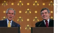 | U.S. President Bush (l) is seen at a press conference with British Prime Minister Gordon Brown (r) at the Foreign and Commonwealth3 Office in London, 16 Jun 2008 |
