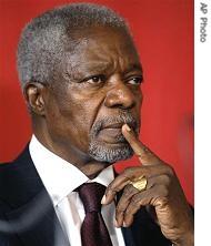 Mr. Annan also gave a separate press briefing in London, calling for the Zimbabwean government to stop its intimidation campaign and allow the opposition to campaign freely.