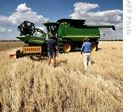 | Dry, stunted1 barley2 crop being prepared for harvesting on property of farmer Paul Rout3 at Grenfell in the central west of New South Wales, Australia (2007 File) |