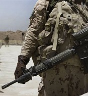 | Canadian soldier with International Security Assistance Force (ISAF) stands guard in Arghandab district, 19 Jun 2008 |