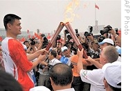 China's first man in space, Yang Liwei, was the first to carry the torch. Other famous Chinese torch bearers included NBA basketball star Yao Ming and film director Zhang Yimou, who is also directing the opening and closing ceremonies for the Beijing games.