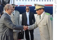 | Mauritanian President Sidi Ould Cheikh Abdallahi (l) shakes hands with General Ould Abdel Aziz in Nouakchott (file photo) |