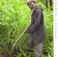 This 24-year-old student, Jean-Bertrand, is one of the few men here not carrying a rifle. He is here to help with harvesting in the fields, but has not brought any of his books here, because he says he would not want to get them stolen.