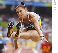 | Lyudmila Blonska competes during long jump event at Beijing Olympics |