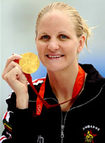 | Kirsty Coventry with first gold medal from Beijing Olympics, 16 Aug 2008 |