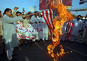 | Pakistanis in town of Multan protest US strikes in country's northwest, 12 Sept 2008 |
