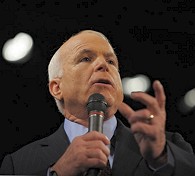 | Sen. John McCain speaks at a town hall meeting at the Scranton Cultural Center at the Masonic Temple in Scranton, Pennyslvania, 22 Sept. 2008 |