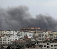 | Smoke rises from an explosion after an Israeli missile strike on a Hamas security building in Gaza City, 31 Dec. 2008 |