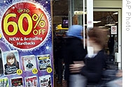 | London Shoppers pass a High Street shop offering large discounts to encourage shoppers, 23 Dec 2008 |