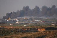 | Smoke rises during an Israeli army operation in the Gaza Strip as seen from the Israel side of the border with Gaza, Sunday, 04 Jan. 2009 |