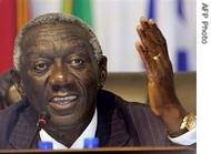 | John Atta-Mills gives thanks in celebration of his election as Ghana's next leader, Accra, 04 Jan 2009 |