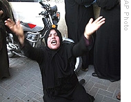 | A Palestinian woman reacts outside Shifa hospital in Gaza City, 06 Jan 2009 |