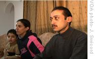 His wife, Suhad gets on the phone to talk with her mother-in-law. She was crying, Suhad says, and her message was, "Do not worry about us, just take care of the family, your husband and the children."