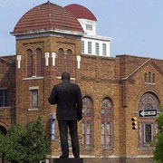 | A statue of Rev7. Martin Luther King Jr. stands in a park across the street from the 16th Street Baptist Church in Birmingham, Alabama (file) |