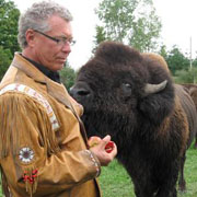 | John Trippy, owner of the Wild Winds Buffalo Preserve, with one of his animals. |